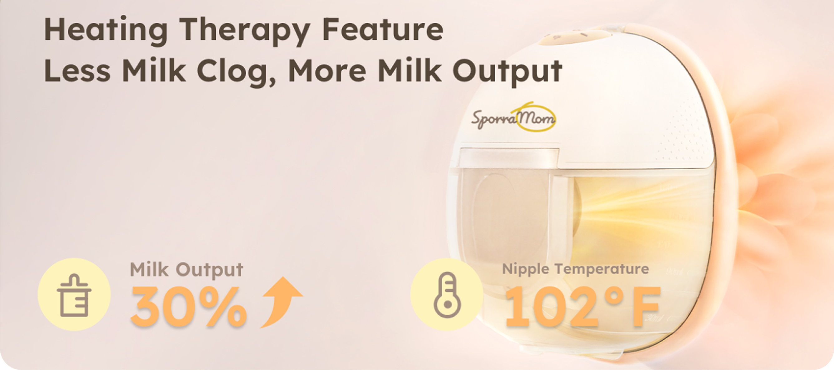 Gentle heat setting to promote milk flow and reduce clogged ducts, proven to increase milk output by 30% (based on user testing feedback)