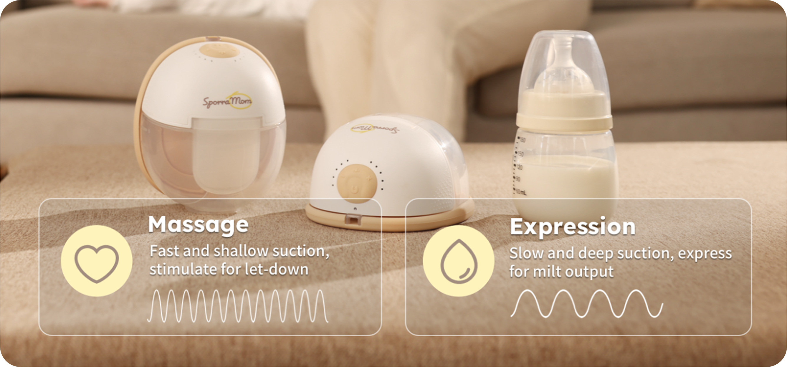 Every ounce of liquid milk matters, so it is important for pumps to have sufficient strengths that can remove every ounce of milk efficiently. SporraMom W2 comes with maximum suction of up to 280 mmHG each side, comparable to pumps used in hospital